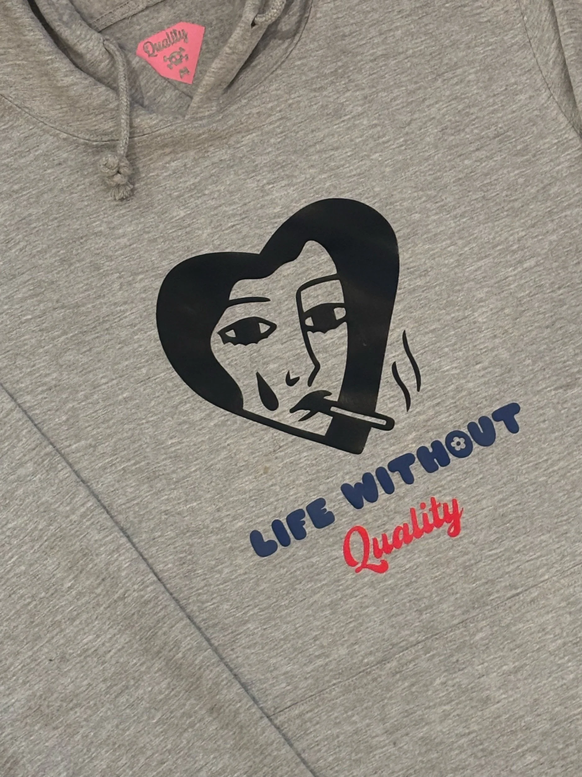 Life Without Quality Hoodie $40.00 100% cotton pullover hoodie, vinyl graphic, grey Apparel › Life Without Quality Hoodie Size: Select Size Small Medium Large XLarge XXLarge XXXLarge Color: Select Color Grey Add To Cart Added! 100% cotton pullover hoodie, vinyl graphic, grey
